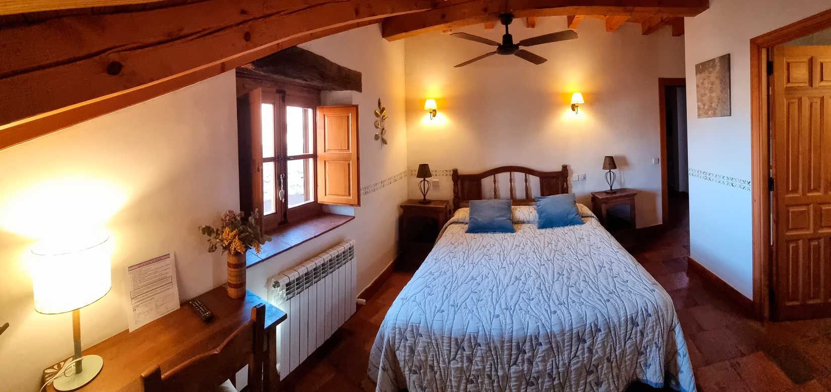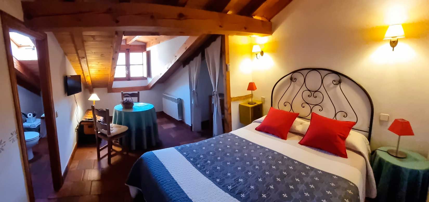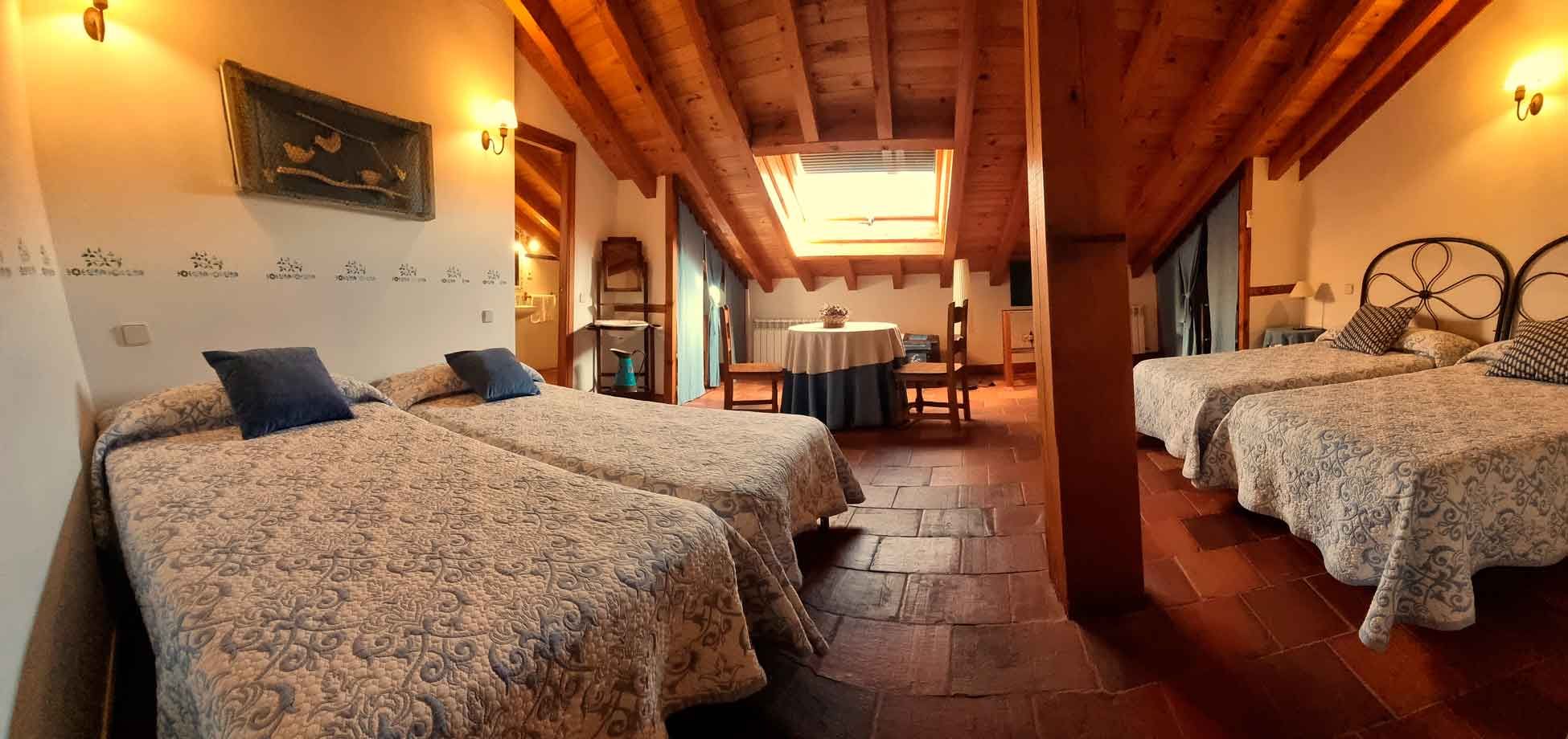 La habitación cuádruple la hayamos en la segunda planta, abuhardillada, y ventana velux que nos permite contemplar las estrellas, y la majestuosa torre de La Martina.